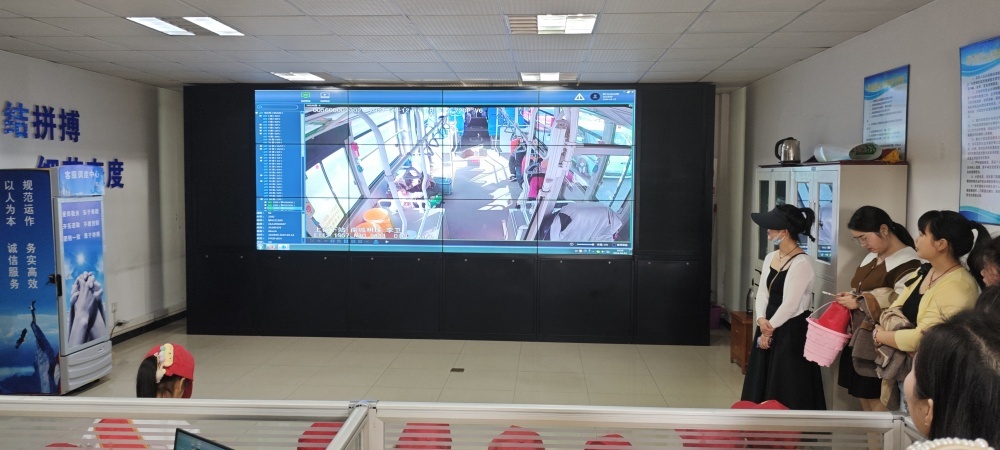 圖/在客服調(diào)度中心,整墻的大屏幕,變動(dòng)的車輛信息和實(shí)時(shí)車載畫面,深深吸引了同學(xué)們的目光。