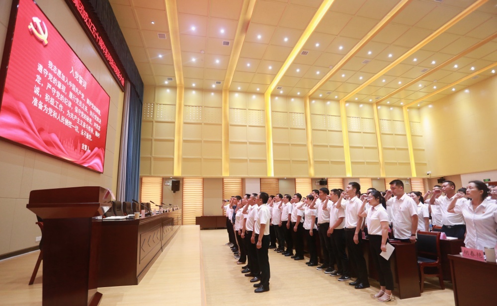 大會在莊嚴(yán)的國歌中拉開帷幕,全體黨員宣讀入黨誓詞,老黨員為新發(fā)展黨員佩戴黨徽,新發(fā)展黨員代表上臺發(fā)言。
