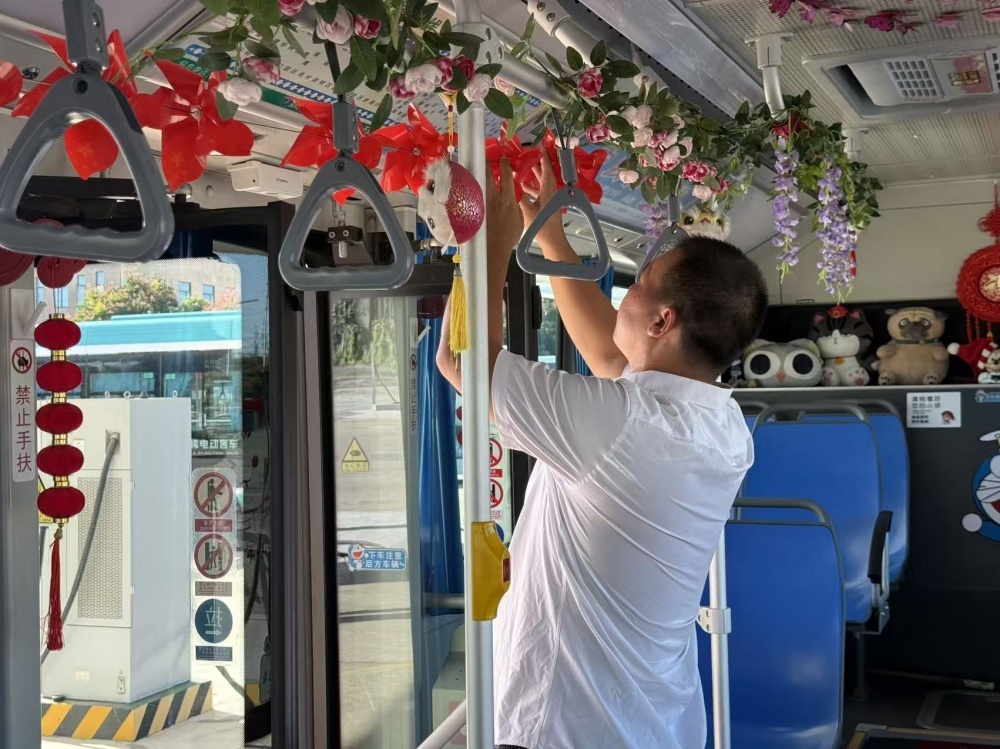 張峻峰是荊門(mén)公交2024年度“最美公交人”,他的車上總比別人多點(diǎn)“暖心”東西:駕駛座旁的小盒子里備著暈車藥、創(chuàng)可貼和折疊傘?!敖衲陣?guó)慶,就想乘客上車能樂(lè)呵樂(lè)呵。”于是張峻峰就動(dòng)了裝飾車廂的念頭。他自費(fèi)買(mǎi)了小國(guó)旗、風(fēng)車、燈籠等裝飾,晚上在家剪剪貼貼,白天利用休息時(shí)間在車上裝飾。張峻峰的行動(dòng),也是荊門(mén)公交服務(wù)提升的一個(gè)縮影。
