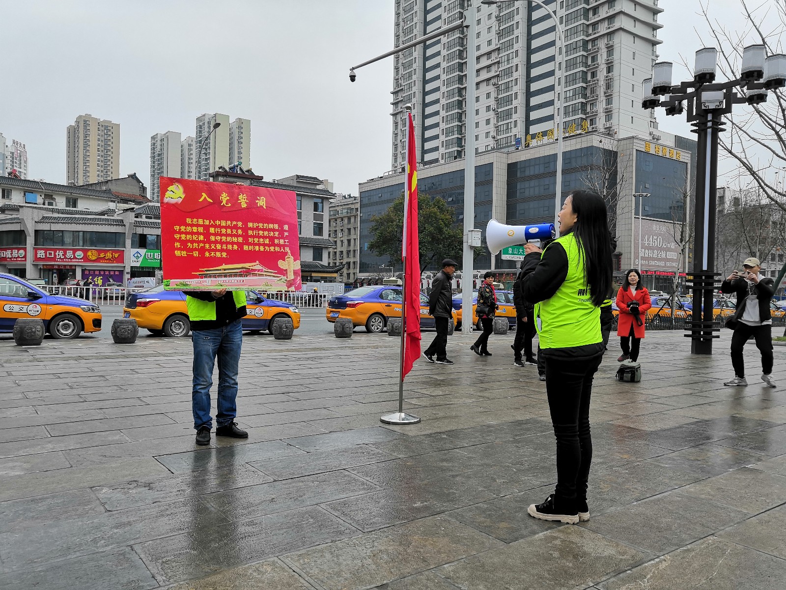 活動(dòng)中雷鋒車隊(duì)優(yōu)秀代表周長艷,公交駕駛員優(yōu)秀代表蘇菊麗也上臺發(fā)起了行業(yè)倡議,做好窗口工作,發(fā)揚(yáng)“奉獻(xiàn)、友愛、互助”的志愿精神。隨后啟動(dòng)儀式結(jié)束。