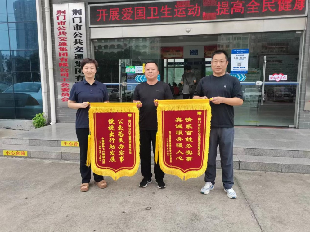 而另一邊,發(fā)現(xiàn)丟了錢包的賀先生在去往武漢的火車上著急萬(wàn)分,抱著不確定的心態(tài)打電話到客服調(diào)度中心詢問(wèn),看能否找回,誰(shuí)知火車才行至鐘祥站的時(shí)候,就接到了電話,說(shuō)錢包已找到,賀先生頓時(shí)放下心來(lái)。待賀先生從武漢歸來(lái)后特地送來(lái)一面錦旗以表示感謝,為公交培養(yǎng)出李學(xué)鋒這樣拾金不昧的駕駛員師傅點(diǎn)贊。