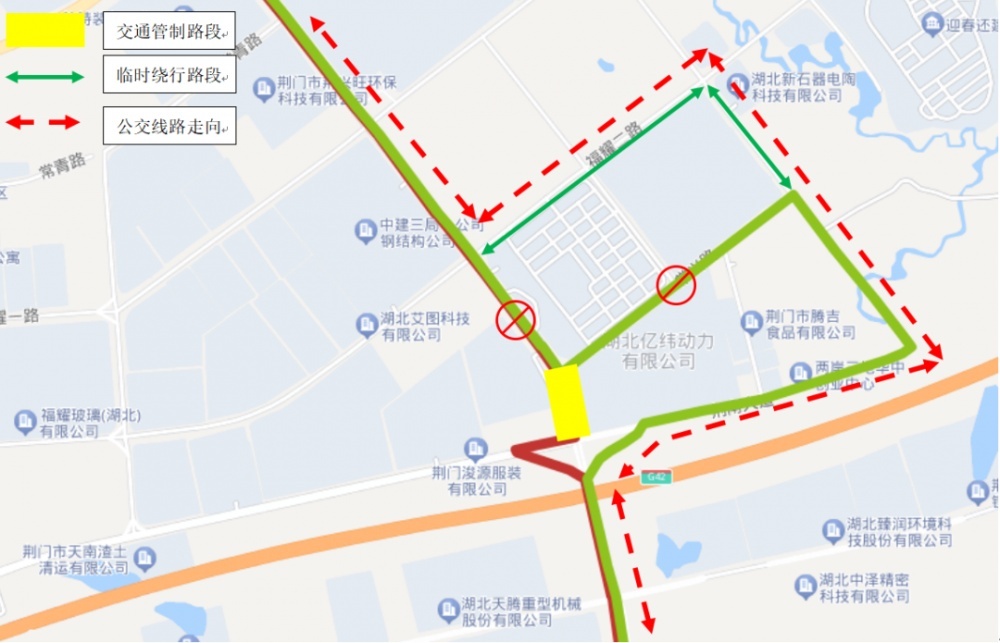 調(diào)整線路走向:原荊南大道—楊樹(shù)港路—常興路—龍井大道段調(diào)整為荊南大道—楊樹(shù)港路—福耀二路(東段)—龍井大道